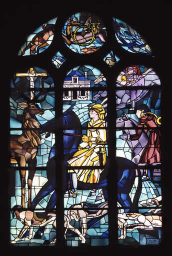 19940200228XA - verrière (vitrail tableau) : la conversion de saint Hubert (baie 6)