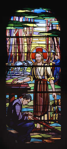 19940200230XA - verrière (vitrail tableau) : Le Christ, artisan charpentier (baie 9)