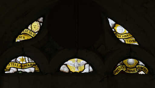 20146000001NUC2A - éléments de vitraux figurés : Les emblèmes de la Vierge (baie 3)
