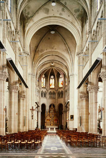 20058002426VA - verrière figurée, dite vitrail tableau : Saint Louis rapportant la couronne d'épines (baie 38)