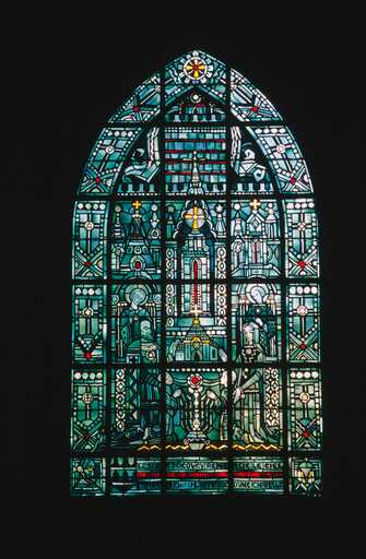 19980205395XA - verrière figurée décorative : Monique Carlin soignant les victimes du typhus et les visitant dans l'église de Jeantes (baie 4)