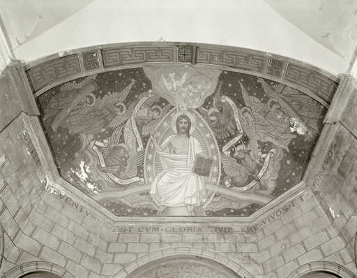 19990200001V - peinture monumentale de style néo-byzantin : Christ Pantocrator entouré des quatre Evangélistes et des anges portant les instruments de la Passion