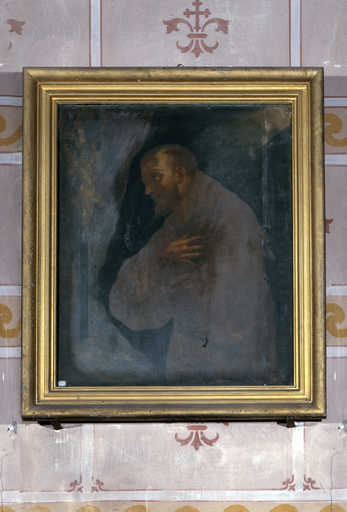19990202613XA - tableau et son cadre : saint François d'Assise, stigmatisé, contemplant un crucifix
