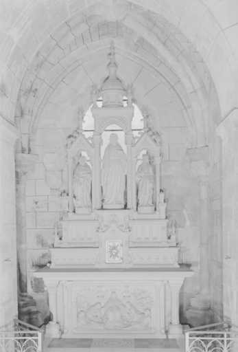 19990202693X - autel secondaire du Christ du Sacré-Coeur : autel, tabernacle, retable architecturé, 3 statues