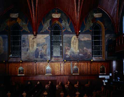 19976200657VA - peintures marouflées représentant Les misères de l'humanité, Les Vertus théologales, les dogmes chrétiens et des scènes de la vie de saints soignant des malades