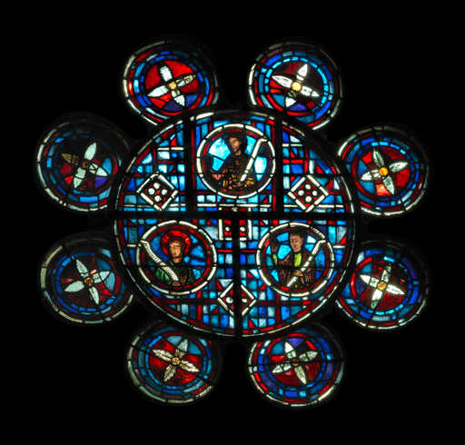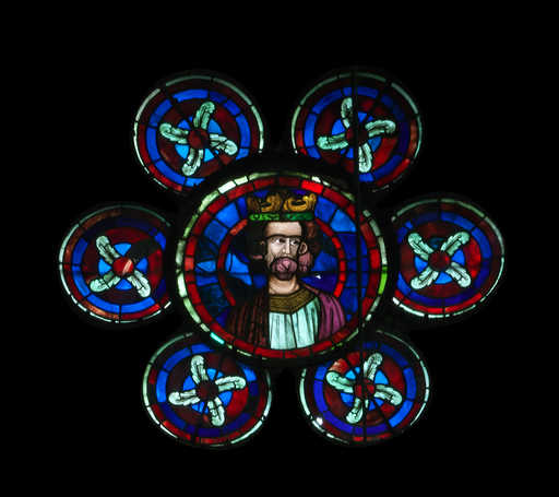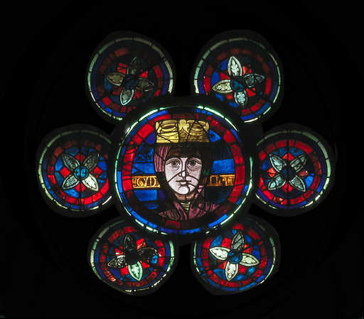 20130200014NUC2A - élément de verrière figurée (oculus de réseau) : homme couronné (baie 109)