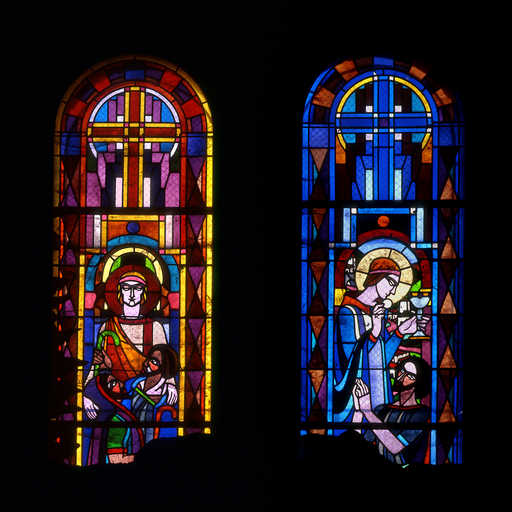 20080200827VA - verrière légendaire (verrière hagiographique) : scènes de la vie de sainte Thérèse de l'Enfant Jésus (baie 1)