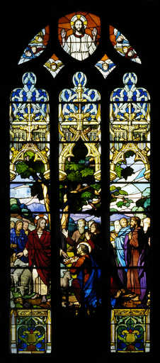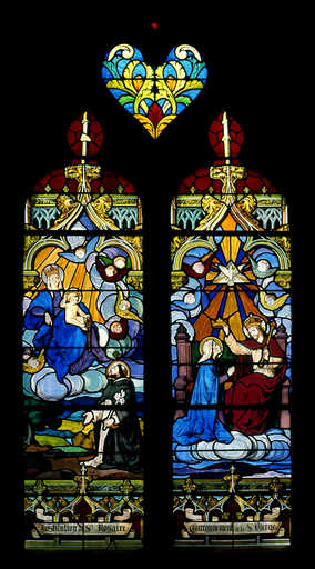 20060200545XA - verrière figurée décorative : le Couronnement de la Vierge et l'institution du Rosaire (baie 12)