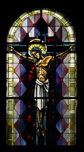20060200683XA - verrière figurée géométrique : Christ en croix