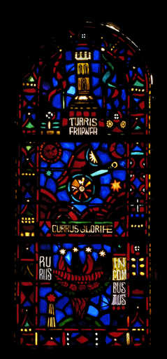 20050201566XA - verrière figurée décorative : symboles de la Vierge (baie 4)