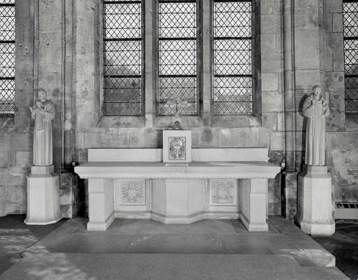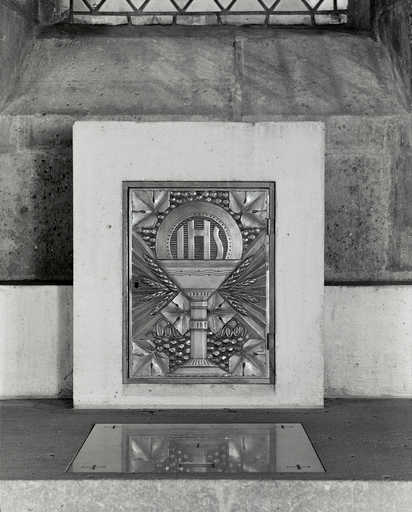20020200474V - "ensemble de l'autel de style ""Arts déco"" de la chapelle des uvres ou chapelle des Catéchismes (plate-forme d'autel, autel table, gradin d'autel, tabernacle, pierre d'autel)"