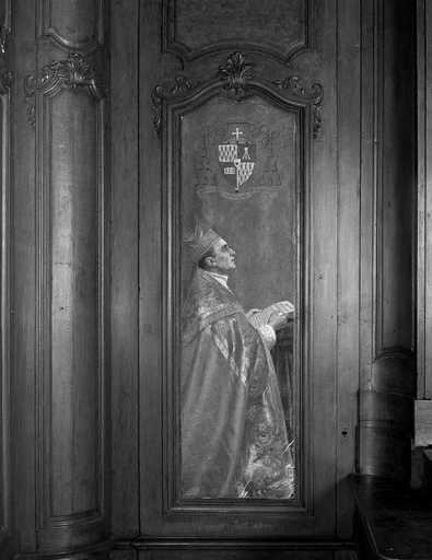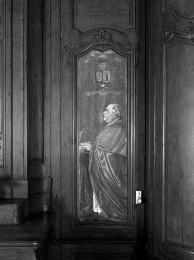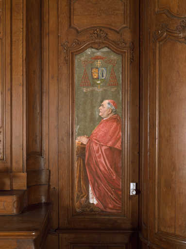 20020200484XA - tableau de la chapelle de la Vierge (Consécration du diocèse de Soissons à Notre-Dame de Liesse) : le cardinal Binet en prière