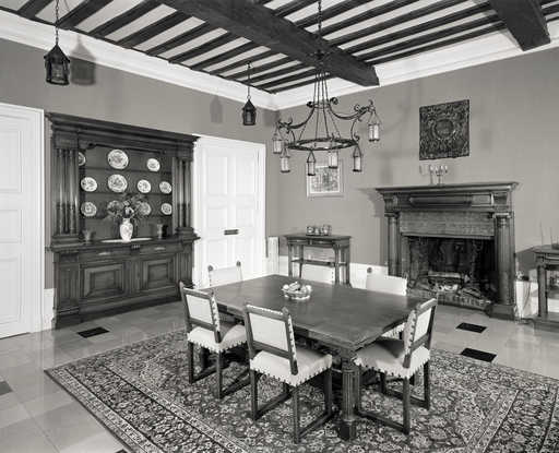 20000200386V - ensemble du mobilier néo-Renaissance de la salle à manger : cheminée, table à manger, 2 tables de décharge, buffet dressoir de présentation, 5 chaises