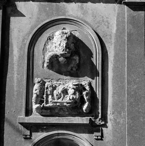 19990205461X - bas-relief : armoiries soutenues par deux lions