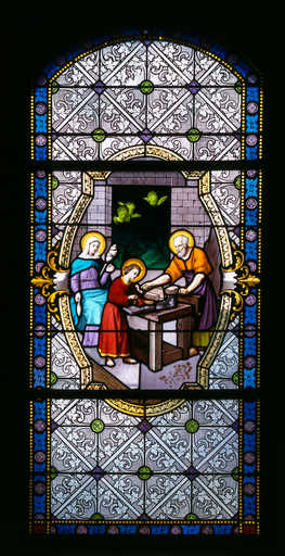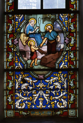 19980201605XA - verrière, vitrail tableau : la Sainte Famille (baie 5)