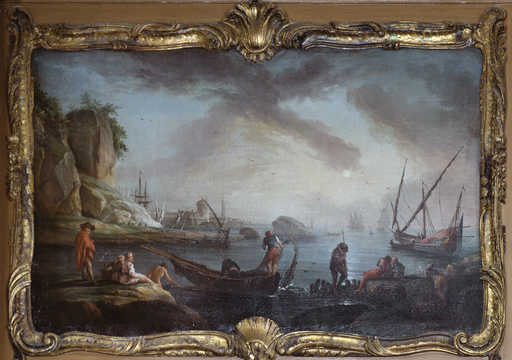 19920201916XA - tableau et son cadre : scène maritime