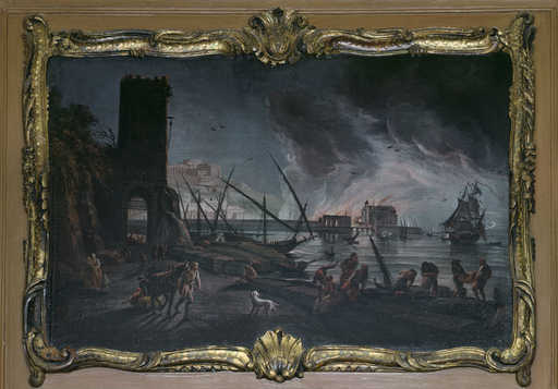 19920201915XA - tableau et son cadre : scène maritime