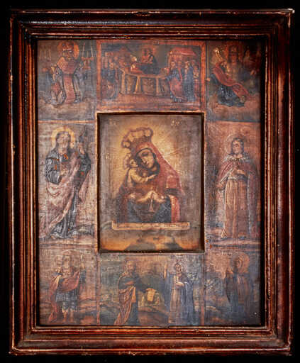 19966004112ZA - tableau (icône) : Vierge à l'Enfant et saints