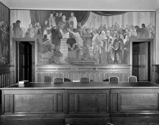 19856001522V - tableau : L'évêque Baudri remet aux habitants une charte de libertés communales