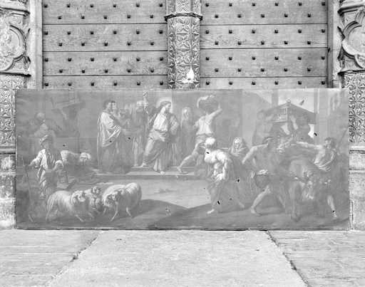 19846000928V - tableau : Jésus chassant les marchands du Temple