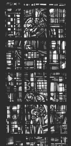 19996001745X - verrière figurée décorative : Scènes de la vie de saint Joseph (baie 6)
