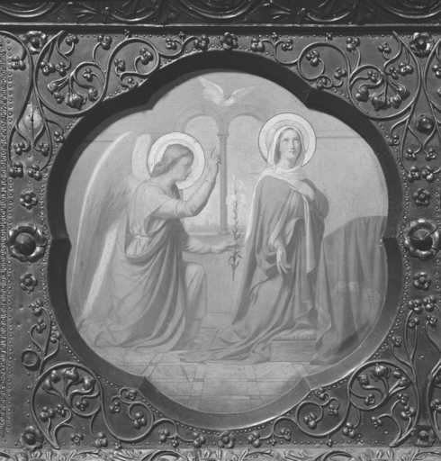 19996001746X - verrière figurée décorative : Scènes de la vie de sainte Anne (baie 5)