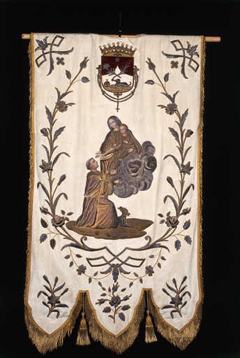 19966002333XA - bannière de procession (rosaire de Beauvais) : La Remise du rosaire à saint Dominique