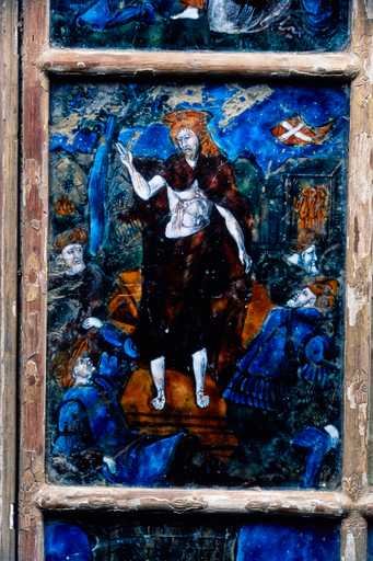 19966000955ZA - verrière figurée (verrière mariale) : La Vierge des litanies, Vierge à l'Enfant, saint Michel terrassant le dragon et sainte Barbe (baie 0)
