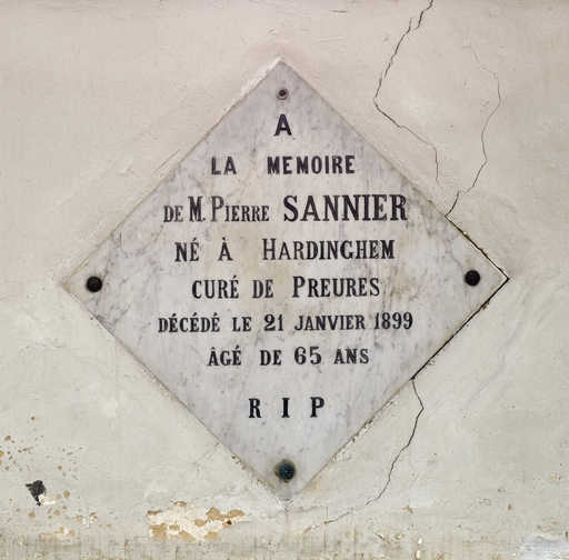20236200502NUCA - plaque commémorative de Pierre Sannier (1833-1899), curé de Preures (?-1899)