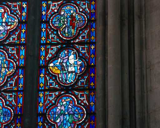 20028000163X - verrière (baie 18) : scènes de l'Enfance du Chrtist et de la Passion