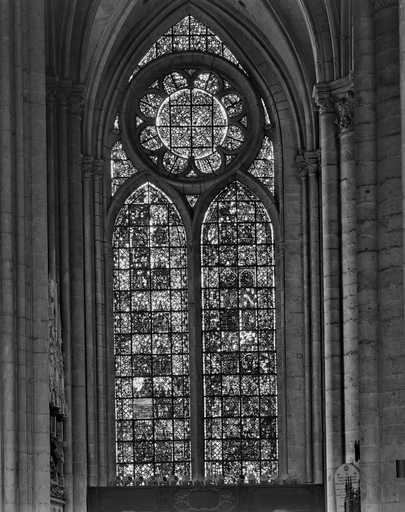 20028000015V - verrière légendaire (baie 27) : éléments de l'histoire de la Genèse et d'un Arbre de Jessé