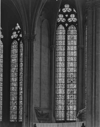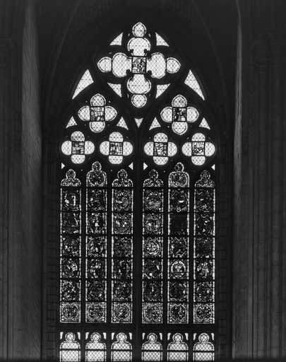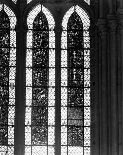 20028000017X - verrière légendaire, verrière hagiographique (baie 40) : scènes de la vie de saint Jean-Baptiste, scènes de la vie de saint Georges