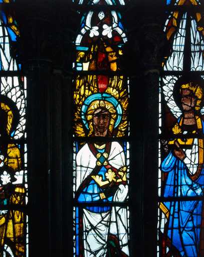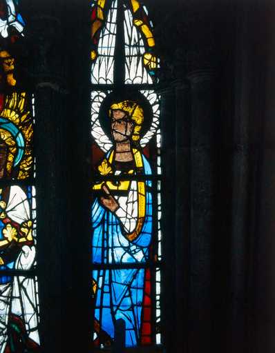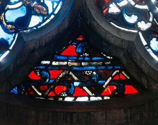 19848000527XA - verrière à personnages (baie 200) : partie inférieure de la rose du tympan