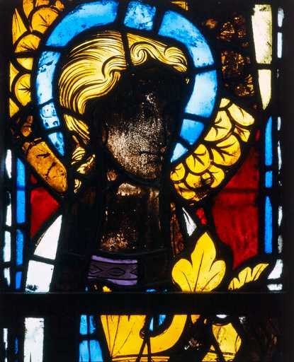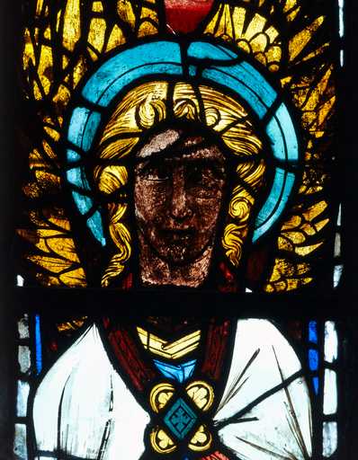 19848000521XA - verrière à personnages (baie 200) : visage d'un ange portant une couronne