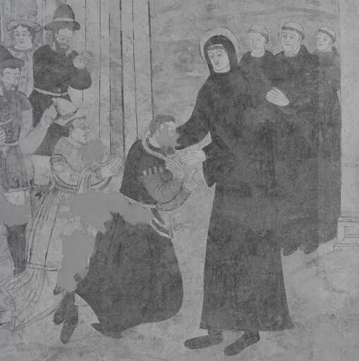 20000201322X - peinture monumentale : saint Benoît déjoue la ruse du roi des Goths Totila qui se jette à ses pieds