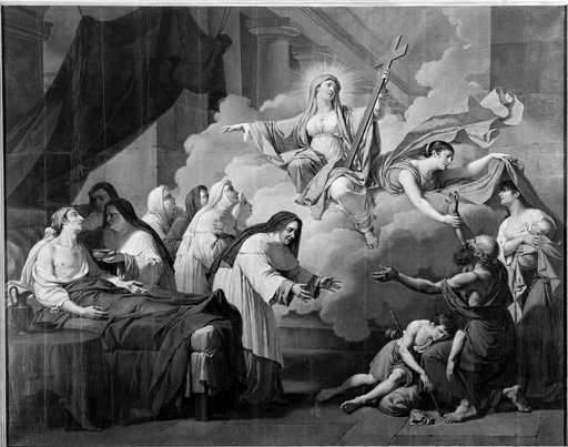 19920200766V - tableau : la Religion et l'Humanité s'unissent pour soulager les souffrances.