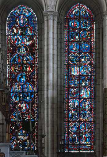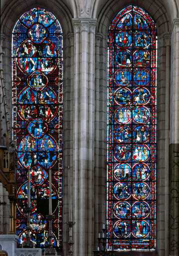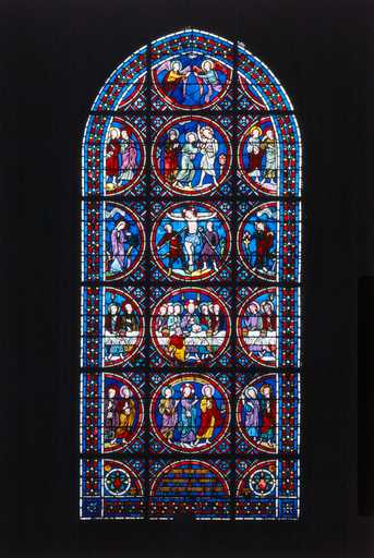 19880200459XA - verrière du Sacré-Coeur (baie 4, verrière légendaire, vitrail archéologique)