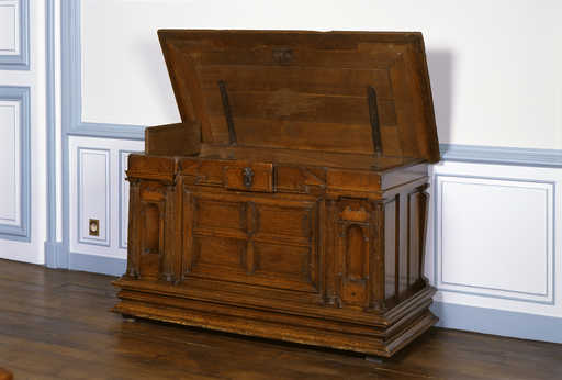 20000200399XA - coffre plat dit huche, de style Renaissance (coffre à vêtements ?)