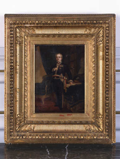 20000200409XA - tableau et son cadre : portrait en pied d'un sous-préfet