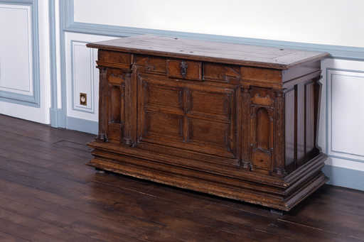 20000200411XA - coffre plat dit huche, de style Renaissance (coffre à vêtements ?)